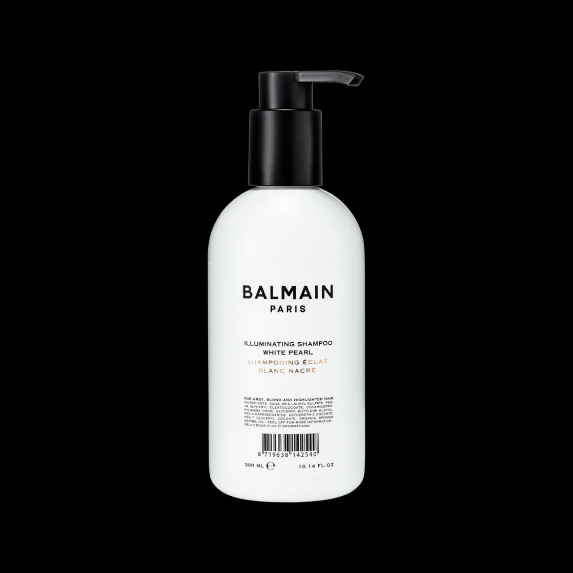 De Illuminating Shampoo White Pearl van Balmain Hair is een zilvershampoo met pure violet pigmenten die ongewenste warme tinten in blond haar tegengaat. Speciaal ontwikkeld voor geblondeerd haar en haar met highlights om de haarkleur te verhelderen. Een gele/oranje gloed kan gecorrigeerd worden tussen kleurbehandelingen in, zonder grijs te maken. De mild reinigende formule zorgt voor optimale hydratatie en is verrijkt met Argan Elixer en zijde proteïne om het haar van binnenuit de herstellen voor glanzend haar met een parelmoeren finish.