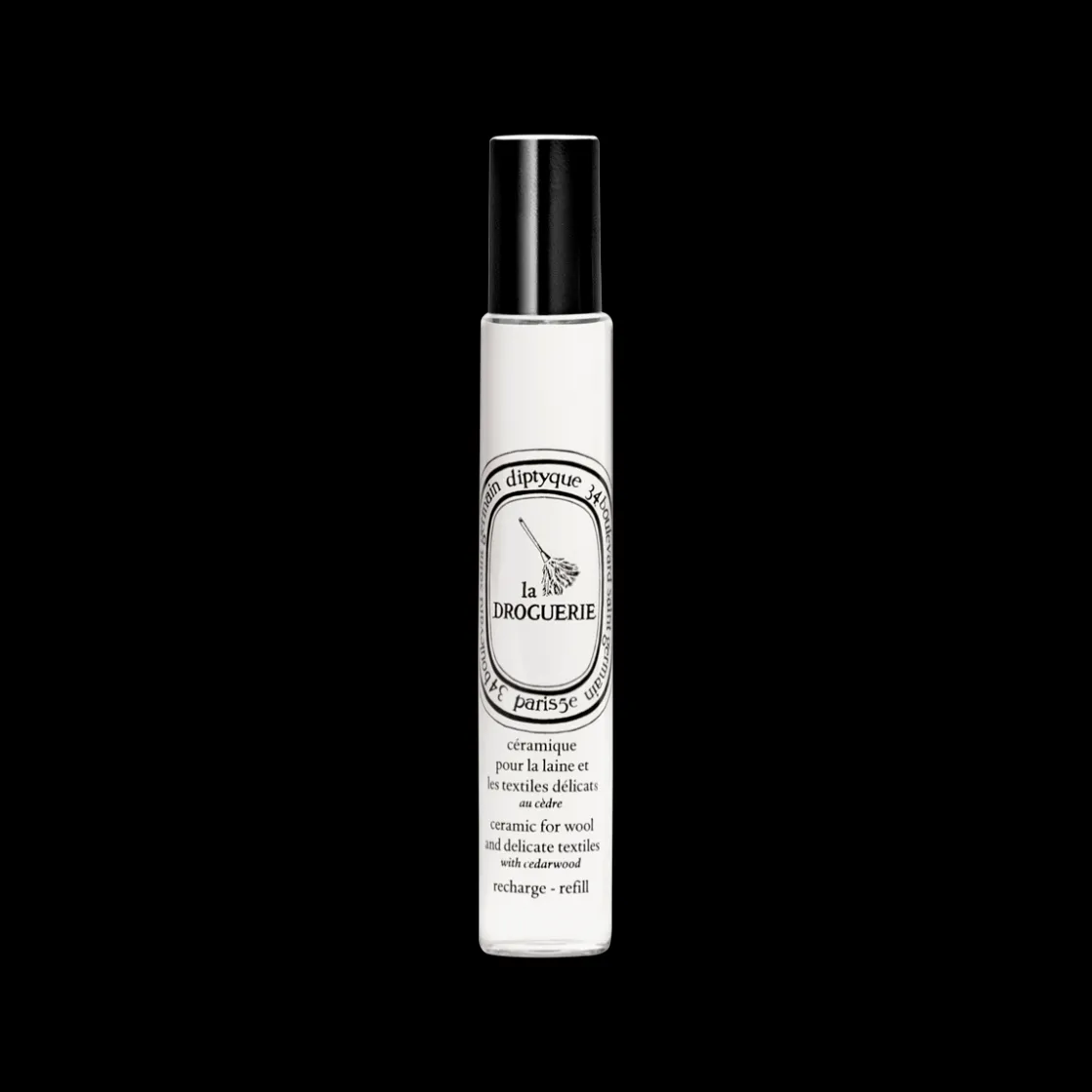 De La Droguerie Ceramic for Wool and Delicate Textiles Refill van DIPTYQUE is een navulling van 10ml voor het porseleinen medaillon dat gebruikt kan worden om kledingkasten- en lades te parfumeren. Het verrijkt deze intieme ruimtes en kwetsbare stoffen, zoals wol en kasjmier, met warme, intense noten van cederhout en heldere lavendel. Op deze manier geniet je elke dag van een zintuigelijke ervaring en bovendien stoten deze geuren van nature motten af, zodat jouw kostbare kledingstukken beschermd blijven.Vul het keramieken medaillon met het parfum. Plaats het medaillon op een plek die jij wil parfumeren of waar kleding ligt die je wil parfumeren.