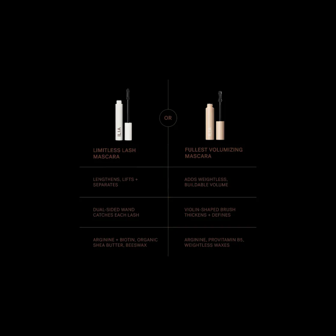 Met de Mascara Duo Set van ILIA mix, match en breng twee bekroonde formules aan die je wimpers bij elke beweging voeden.