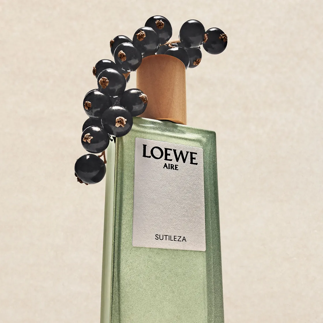 LOEWE Aire Sutileza wordt geleverd in een doorschijnende glazen flacon in een zachte tint bladgroen.