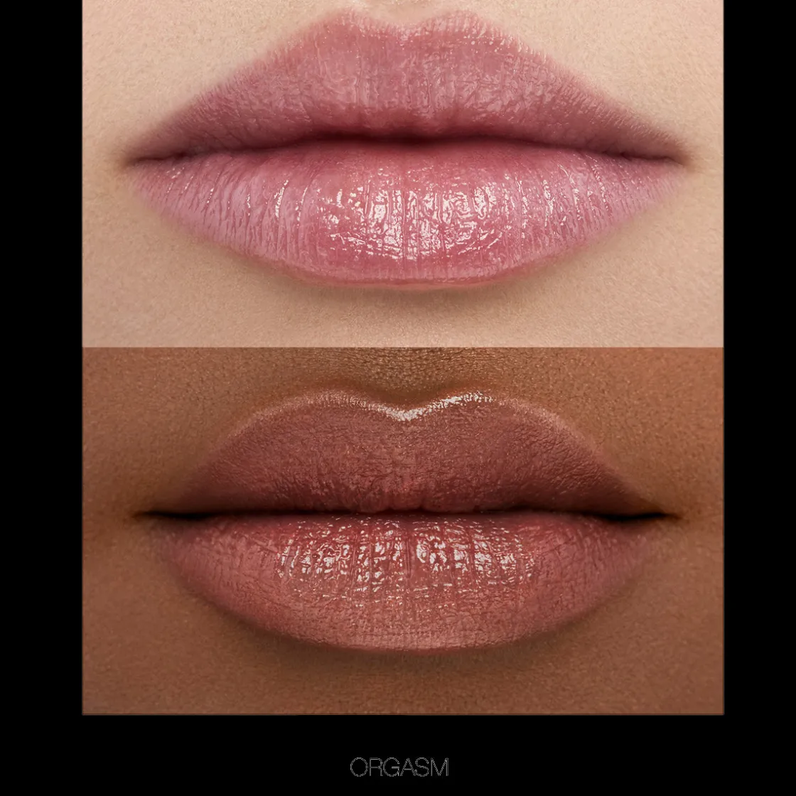 Breng Illuminating Loose Powder aan over Orgasm Afterglow Lip Balm voor een goudkleurige glans.