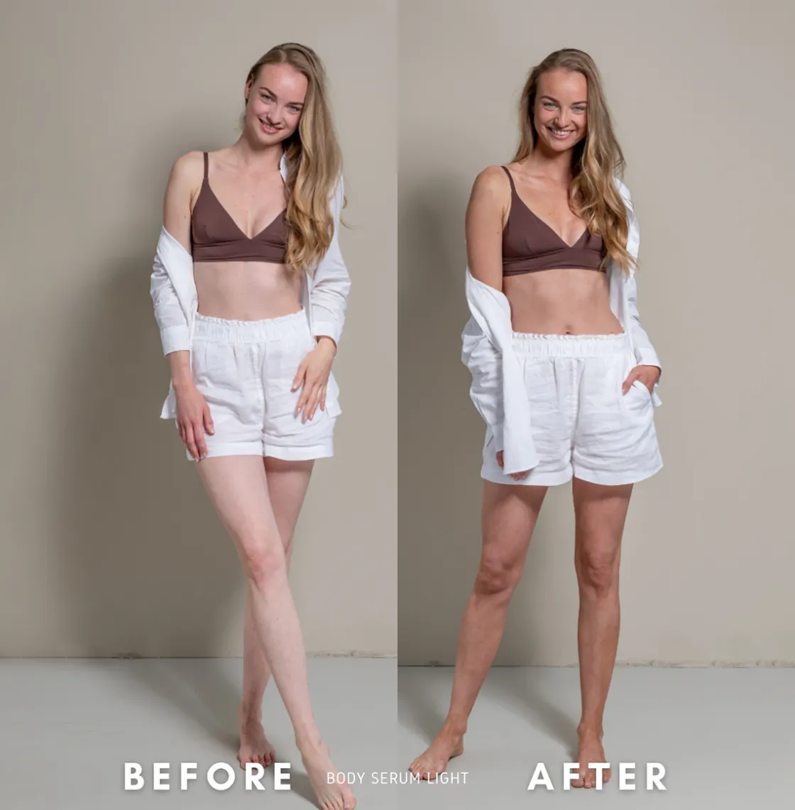 Het Body Serum Light van ROQUEBRUN zorgt voor een gezonde, gebruinde glans en hydrateert je huid. Breng het lichaamsserum rechtstreeks op een schone huid aan. Gebruik het zelfbruinerserum ’s morgens of’ s avonds, alleen of samen met je bestaande huidverzorgingsregime. Je kunt het serum op zichzelf gebruiken, omdat het speciaal is ontworpen met hoogwaardige ingrediënten om je huidverzorgingsroutine te optimaliseren. De belangrijkste ingrediënten, hyaluronzuur, collageen en aloë vera, sluiten perfect aan op de behoeften van jouw huid.