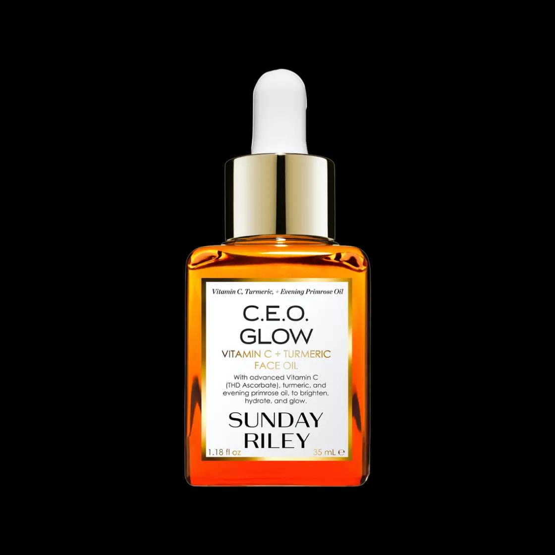 C.E.O. Glow Vitamin C + Turmeric Face Oil van Sunday Riley is een glow-gevende olie die de uitstraling van je huid weer oplaadt. Verrijkt met geavanceerde vitamine C en gouden kurkuma voor onmiddellijke levendigheid en antioxidant bescherming. C.E.O. Glow voorziet de huid van koudgeperste, voedende extracten, waardoor de teint er stralender en gevoed uitziet.