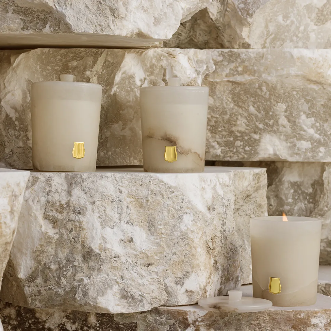 De Abd El Kader geurkaars van Cire Trudon is als onderdeel van The Alabasters collectie gehuld in een prachtige witte keramieken houder met bijbehorende deksel, en verspreidt de warme, kruidige geur van een traditionele muntthee in elke gewenste ruimte in huis. De Abd El Kader geur is geïnspireerd op Algerije: een windvlaag van vrijheid waait van de Macara-kust richting de bergen en neemt de geuren van verse munt, pittige gember en zware thee en tabak van de Ouled-Nail stam met zich mee. Topnoten: zwarte bes, citroen, kruidnagel, gember, munt, appel. Hart: jasmijn. Basis: vanille.